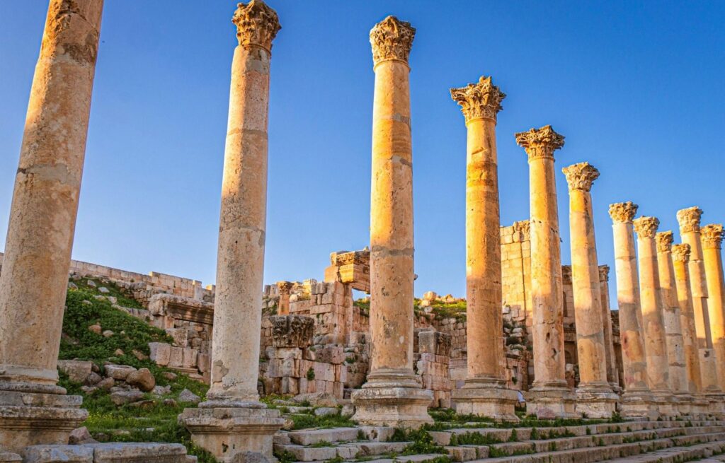 Le città di Jerash e Madaba regalano panorami unici da cartolina. Jerash è un’antica città fondata intorno al IV secolo a.C. e merita di essere visitata per il suo foro ellittico e per l’imponente via colonnata. Chiamata anche la Pompei d’Oriente, fu teatro di insediamenti di varie popolazioni come quella romana, bizantina, musulmana e turca. In particolare offre una vasta collezione di reperti di epoca romana, tra cui l’Arco di Adriano, il Teatro Romano, il Santuario di Zeus e il Tempio di Artemide.